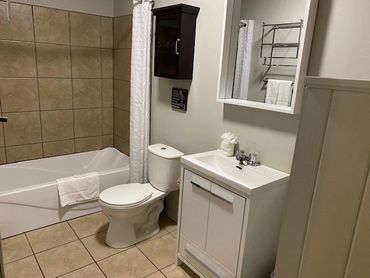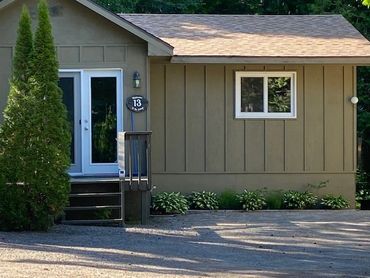 Cottage 13: Located just steps from the 450 ft. sandy beach. Cottage has large deck with a great view of the lake, two large bedrooms, one with a queen bed, the other with a double and a twin bed. Electric fireplace in the sitting area, washroom with tub/shower combo, fully equipped kitchen and satellite tv.