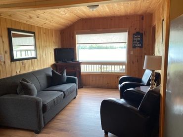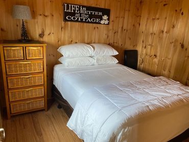 Cottage 2 is situated right on the waterfront, only steps from the 450 ft sandy beach. It has a fully equipped kitchen, two bedrooms (one double bed, one queen bed) and washroom with large walk in shower with seat. Each cottage has a walk out deck, outdoor furniture, propane barbecue, and satellite tv for those rainy days.