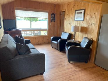 Cottage 4 is situated directly on the waterfront, only steps from the 450 ft sandy beach. It has a fully equipped kitchen, two bedrooms (one double bed, one queen bed) and washroom has large walk in shower with seat. Each cottage has a walk out deck, outdoor furniture, propane barbecue, and satellite tv for those rainy days.