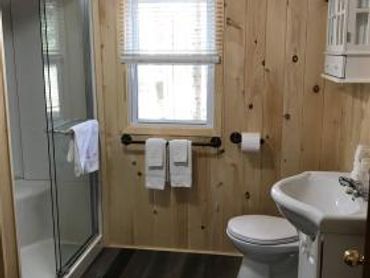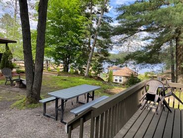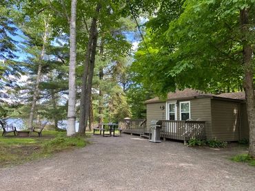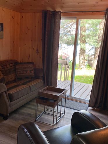 Cottage 7 is located on the upper level of the resort overlooking the lake. Very cozy one bedroom cottage (queen bed). Bathroom with large walk in shower with seat, is located off the bedroom. Fully equipped kitchen, patio door opens to wrap around deck, electric fireplace, and satellite tv for those rainy days.